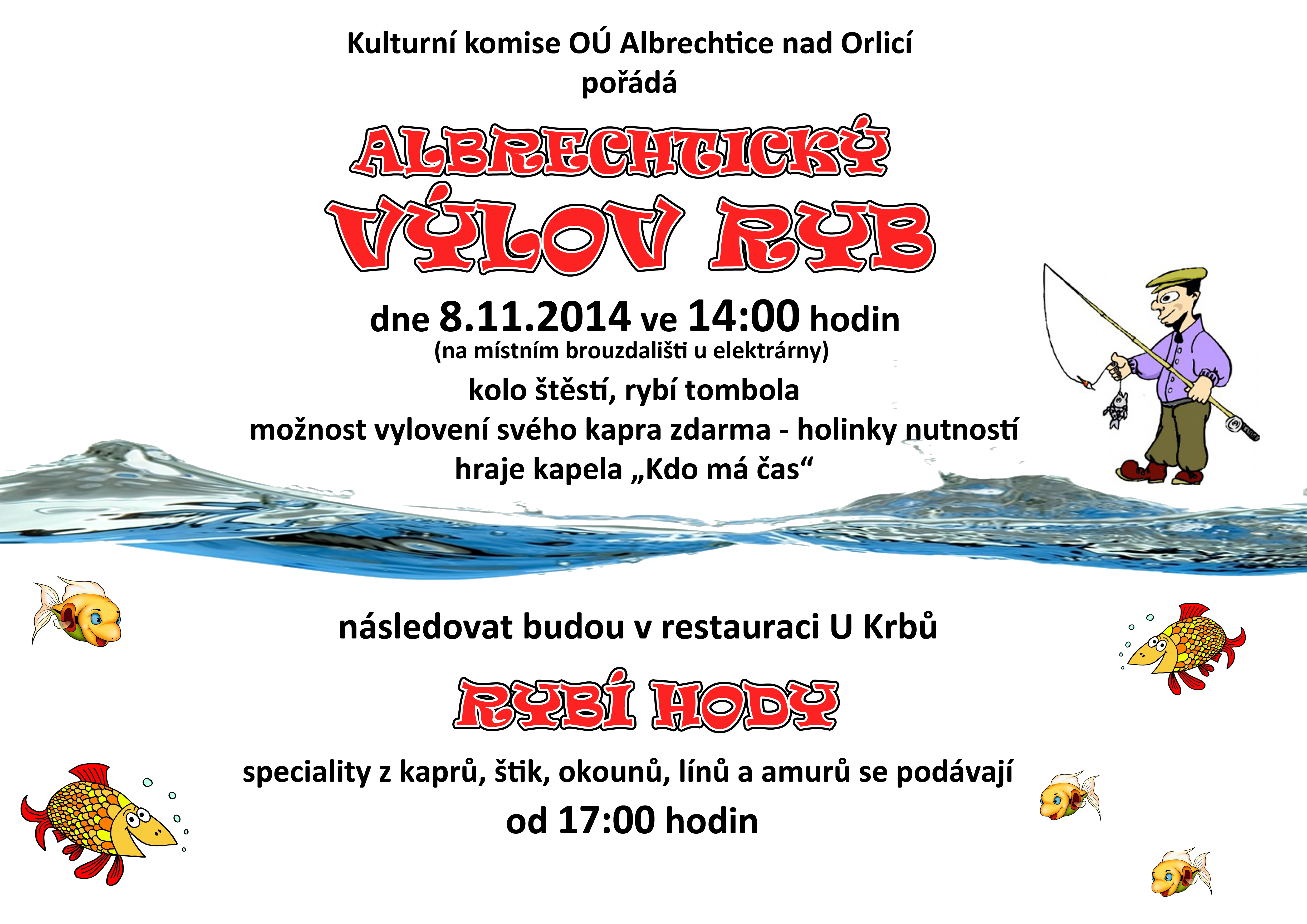 Obecní úřad Albrechtice nad Orlicí oznamuje občanům obce, že se dne 4. 12. 2014 od 18.00 hodin koná v zasedací místnosti obecního úřadu veřejné zasedání zastupitelstva obce. Na programu zasedání je: 1. Kontrola plnění usnesení, 2. Složení slibu člena zastupitelstva obce, 3. Projednání Studie využití sportovního areálu Sokolák, 4. Informace o průběhu stavby „Komunikace, chodníky a veřejné osvětlení na návsi“, 5. Příprava stavby „Technická infrastruktura lokalita Albrechtice – střed“, 6. Schválení mimořádných odměn uvolněným a neuvolněným členům ZO, 7. Úprava rozpočtu obce č. 6/2014, 8. Schválení rozpočtového provizoria na rok 2015, 9. Žádost o spolupráci s polskou obcí Chrzastowice, 10. Různé