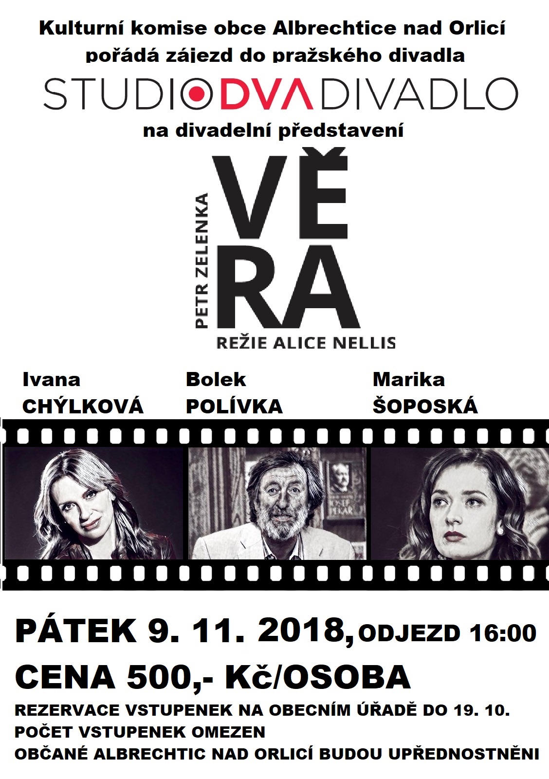 Kulturní komise obce Albrechtice n.O. pořádá 9. 11. 2018 zájezd do pražského divadla Studio Dva, více informací naleznete ZDE.